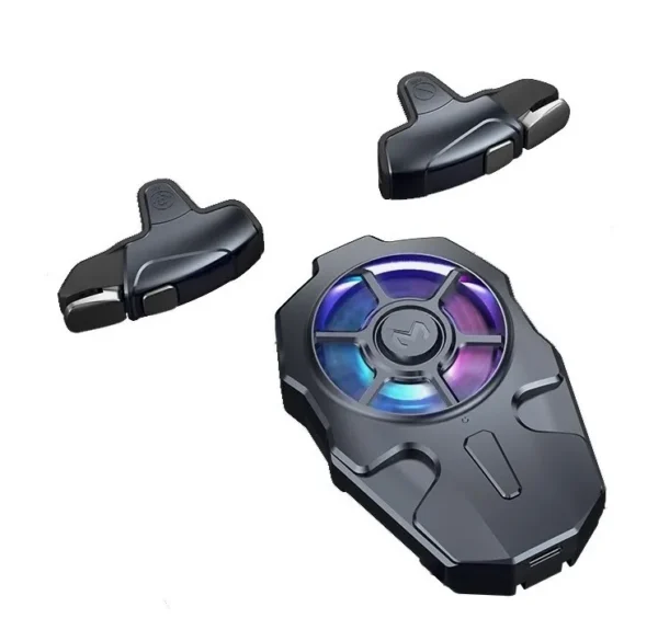 - Incluye: Estuche rígido premium, Ventilador/Radiador de 3 velocidades RGB, Gatillo izquierdo de disparo automático, Gatillo derecho para mira (mecánico), Cable de carga micro USB, Manual de Usuario.