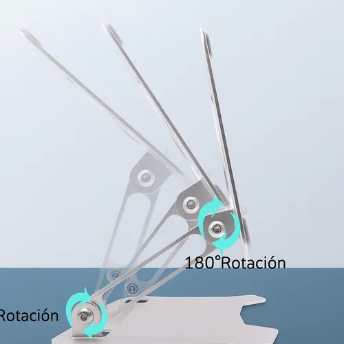 Soporte de aluminio con diseño ajustable en ángulo y altura, ideal para Tablets y iPads de distintos tamaños. Su estructura robusta con base antideslizante brinda firmeza y comodidad para trabajar, estudiar o jugar.